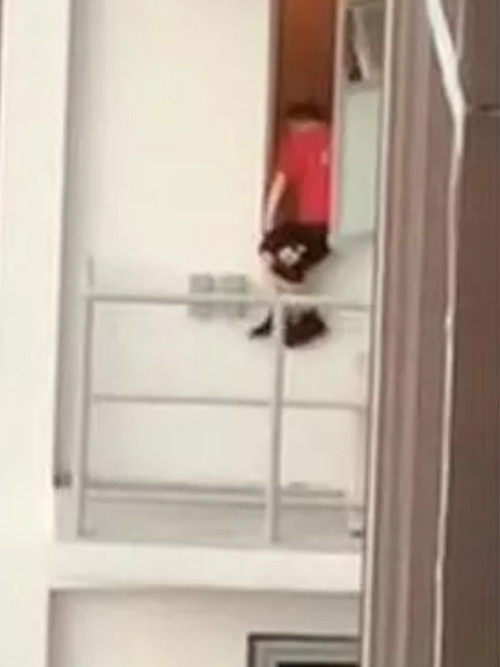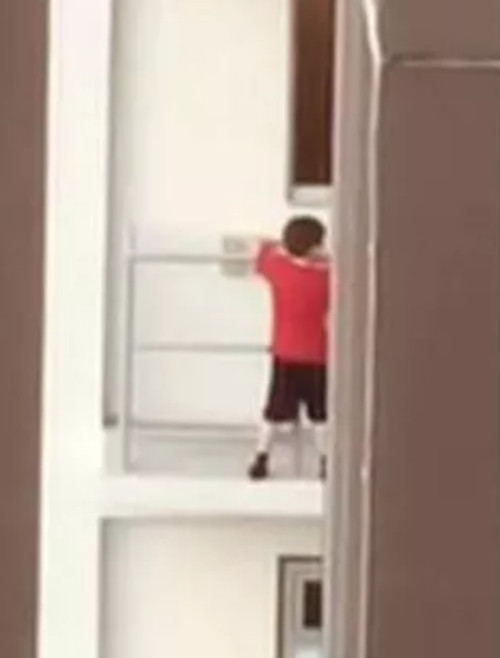 Bố mẹ nào cũng quan tâm đến sự an toàn của con cái, nên bạn hãy hình dung sự kinh hoàng của bố mẹ cậu bé này, khi xem hình con mình trèo hẳn ra bên ngoài ban-công, loay hoay chơi ở cái rìa bé xíu, trong khi căn hộ nhà họ là ở tầng 11 của chung cư.