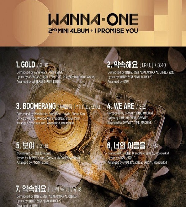 Mini album 0+1=1 (I Promise You) của Wanna One có tổng cộng 7 bài hát, gồm: Gold, I Promise U (I.P.U - ca khúc đã được phát hành trước như một món quà đặc biệt tặng fan), ca khúc chủ đề Boomerang, We Are, I Can See, Your Name, I.P.U (confession ver).