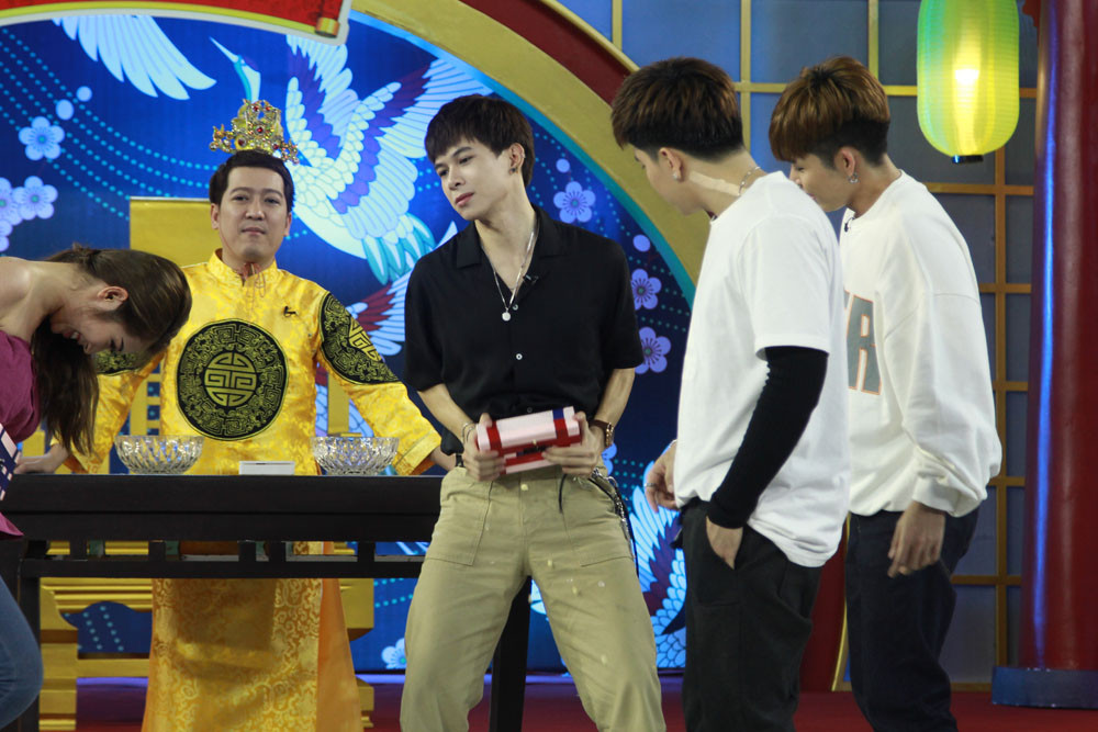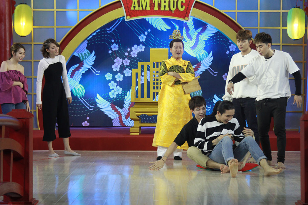 Chương trình tuần này, BB Trần hội họp Khổng Tú Quỳnh, Kim Nhã đối đầu với 3 chàng trai Anh Tú, Jun Phạm và Chi Dân. Trong màn giới thiệu, BB Trần buồn rười rượi và không ngại “tỏ thái độ” không hài lòng với 2 đồng đội của mình: “Em nghe nói là em chơi chung với Kim Nhã, là em đã thấy bế bế rồi, quay qua em gặp Khổng Tú Quỳnh là em thấy tắc luôn”. Về phần đội Anh Tú, nam ca sĩ chọn tên “những anh chàng tô màu cho cuộc sống thêm đẹp và tươi xanh” khiến Trường Giang cười như được mùa.