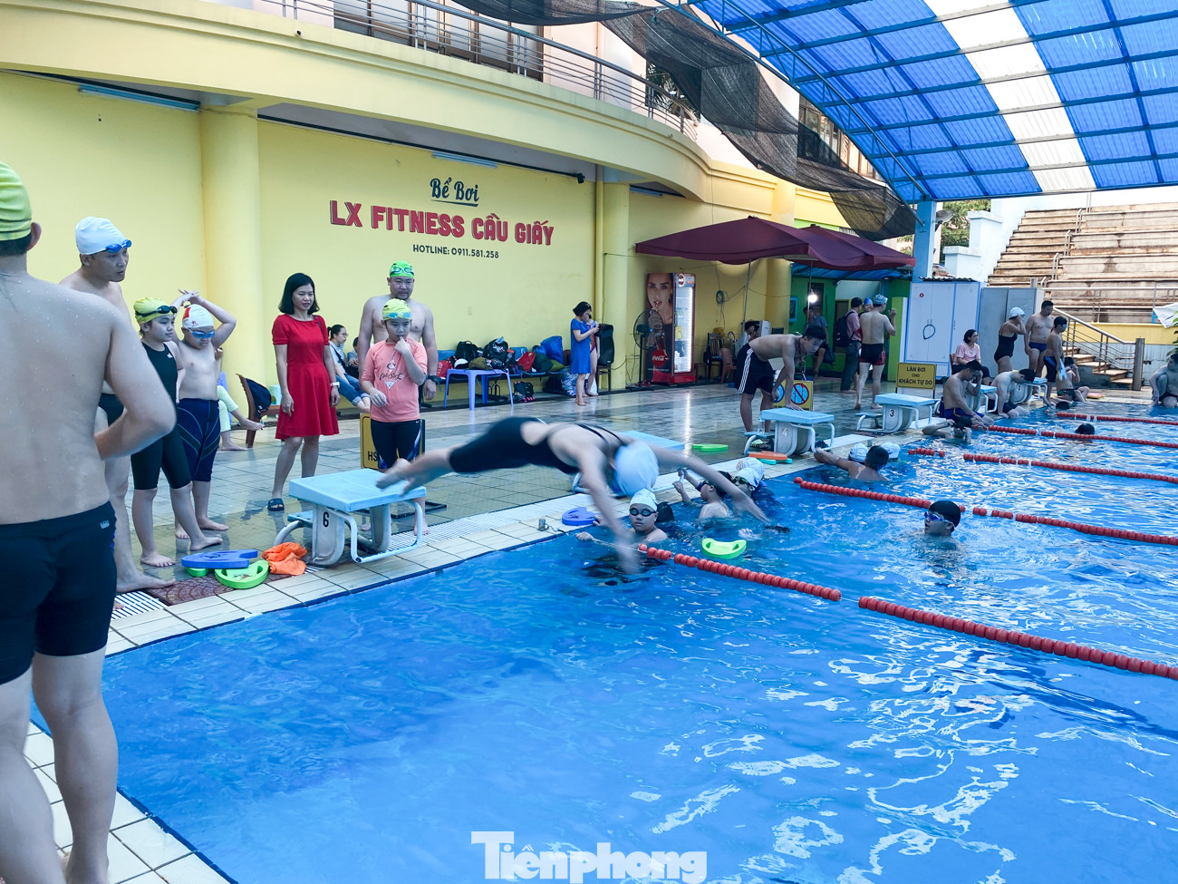 Bể bơi LX tại phố Nghĩa Tân, Cầu Giấy luôn trong tình trạng đông đúc.