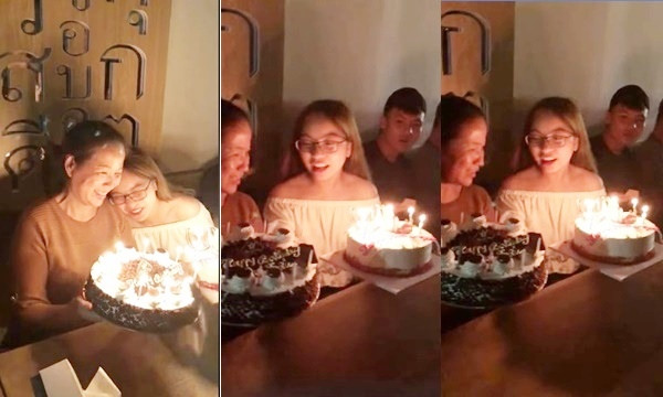 Trong đoạn clip được ghi lại, cả hai vẫn thân mật ngồi cạnh nhau trong bữa tiệc, tươi cười chúc mừng sinh nhật mẹ của Kiều Trinh.