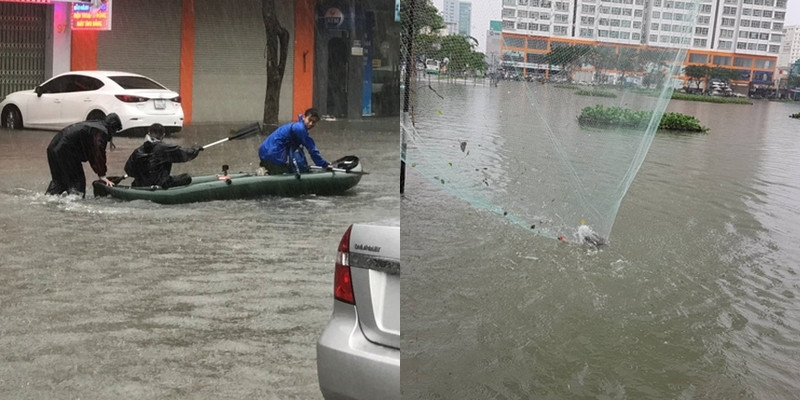 Mặc dù cuộc sống bị đảo lộn, thế nhưng người dân nơi đây lại có khá nhiều hoạt động đặc biệt như bơi lội, chèo xuồng hay thậm chí là quăng lưới bắt cá ngay giữa phố. Trên MXH cũng đã cập nhật rất nhiều hình ảnh về tình hình mưa lũ tại Đà Nẵng. Và trong số đó, có không ít hình ảnh bi hài, khiến cư dân mạng không thể nhịn được cười.