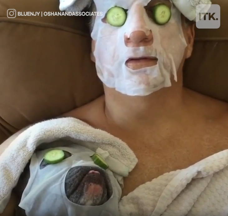 Dù cho ăn gì thì Bluenjy cũng vẫn giữ thói quen là giữ chúng bằng hai chân, từ cà rốt, cải xanh, chuối... Ngộ nghĩnh hơn là cậu bé cũng rất thích đắp mặt nạ giống ba luôn!
