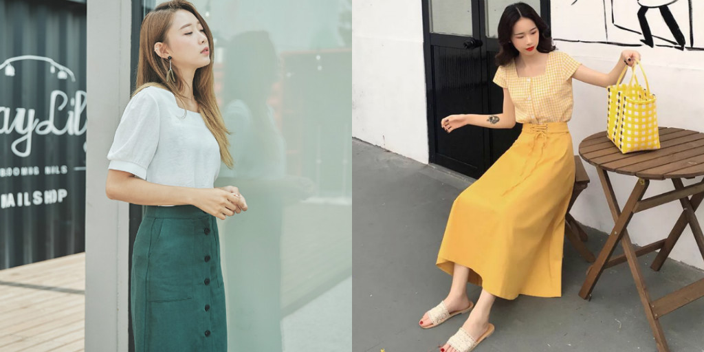 Áo cổ vuông là làn gió mát thổi hồn vào phong cách thời trang của các cô nàng nữ tính. Việc mix áo cổ vuông với chân váy dài đem lại sự kết hợp giữa cổ điển và hiện đại, làm nâng tầm bộ đồ trở nên thanh lịch, dịu dàng, rất phù hợp cho các nàng khi đi làm hoặc đi sự kiện.