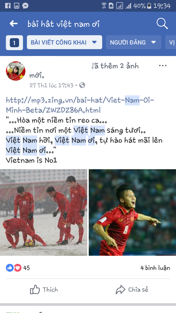 Trong thời khắc thiêng liêng, bóng đá Việt Nam được nhắc đến như một món ăn tinh thần đậm đà dân tộc thì hương vị chính là những bài hát cổ vũ tinh thần, sức mạnh, ý chí giúp các cầu thủ vượt qua được những khó khăn trong các trận bóng. Việt Nam ơi được các cổ động viên bóng đá yêu thích và cất vang lời ca mỗi khi chương trình nghỉ giải lao, đặc biệt là sau mỗi trận thắng và ngay cả trong lúc đón các cầu thủ về nước bởi sự hào hùng và hứng khởi từ giai điệu đến ca từ.