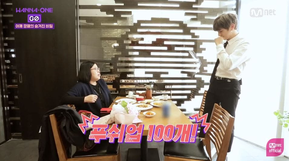 Kang Daniel đã dành một ngày để trở về Busan thăm mẹ, "hẹn hò" với mẹ, vì kể từ khi debut đến nay, Daniel chưa gặp lại mẹ do lịch trình của anh chàng quá dày đặc. Sau khi ăn trưa, mẹ của Daniel đã nói rằng: "Mẹ nghĩ con thực hiện chống đẩy 100 cái thực sự hiệu quả đó".