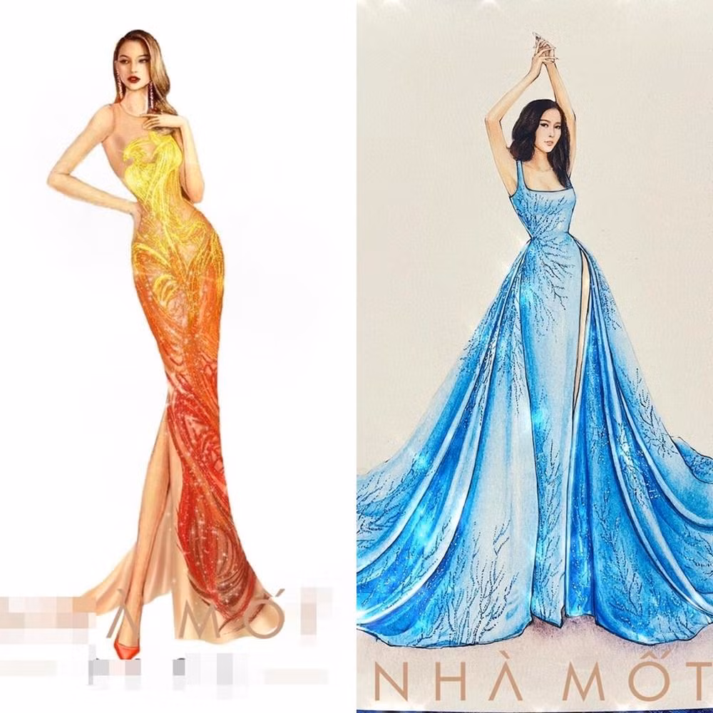 | Hai thiết kế váy dạ hội mà Nam Em dự định mặc từ bản vẽ đến mẫu thật |