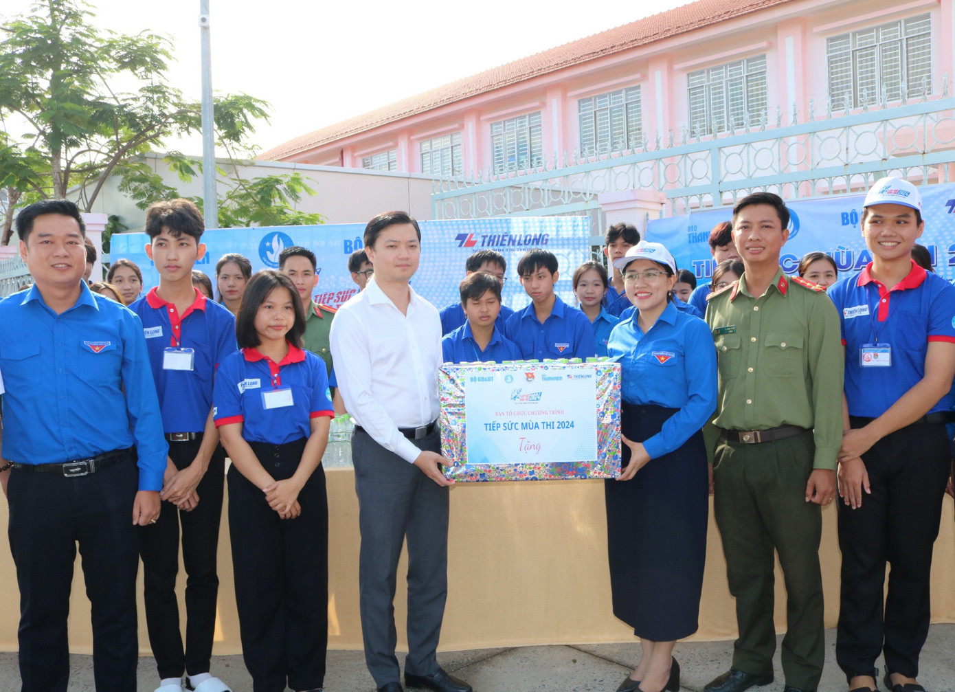 Nhân dịp này, đồng chí Nguyễn Minh Triết, Bí thư T.Ư Đoàn, Chủ tịch Hội Sinh viên Việt Nam đã tặng 2 phần quà cho 2 đội hình tiếp sức mùa thi tại điểm Trường THPT Vị Thanh và điểm Trường THPT Long Mỹ.