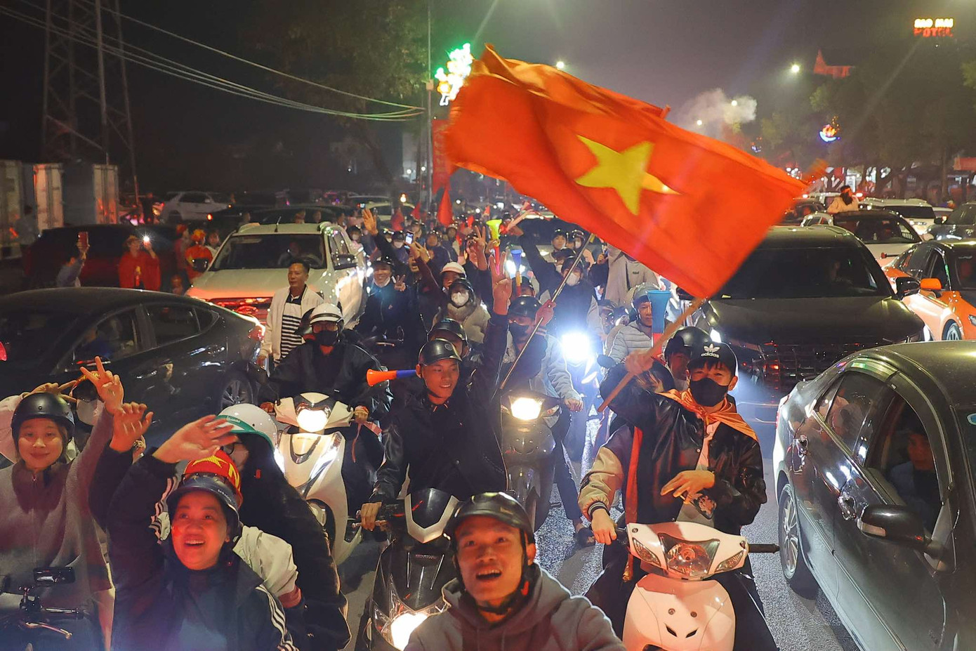 | Các CĐV diễn hành ăn mừng chiến thắng của đội tuyển Việt Nam trong niềm vui và sự phấn khích vô bờ bến. |
