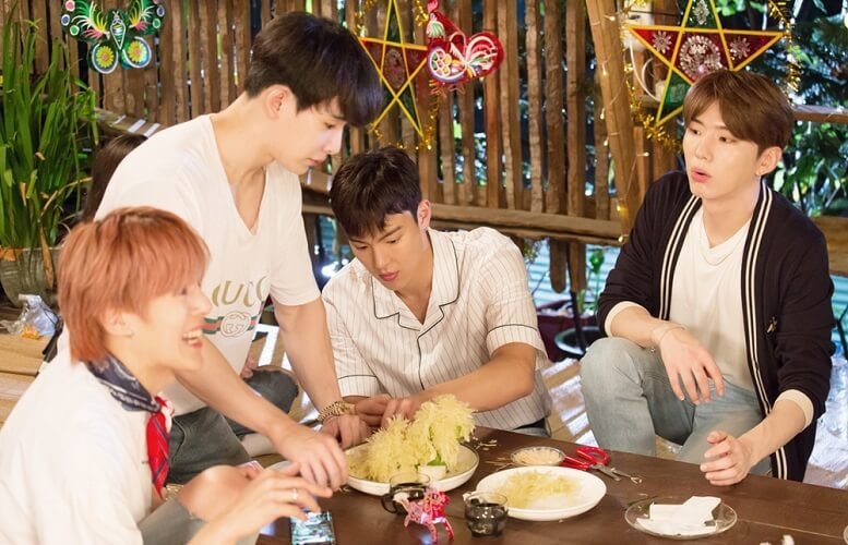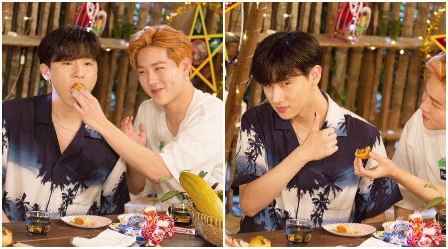 Joo Heon giúp I.M thưởng thức bánh trung thu và thích thú nhìn đồng đội của mình thể hiện cảm xúc.