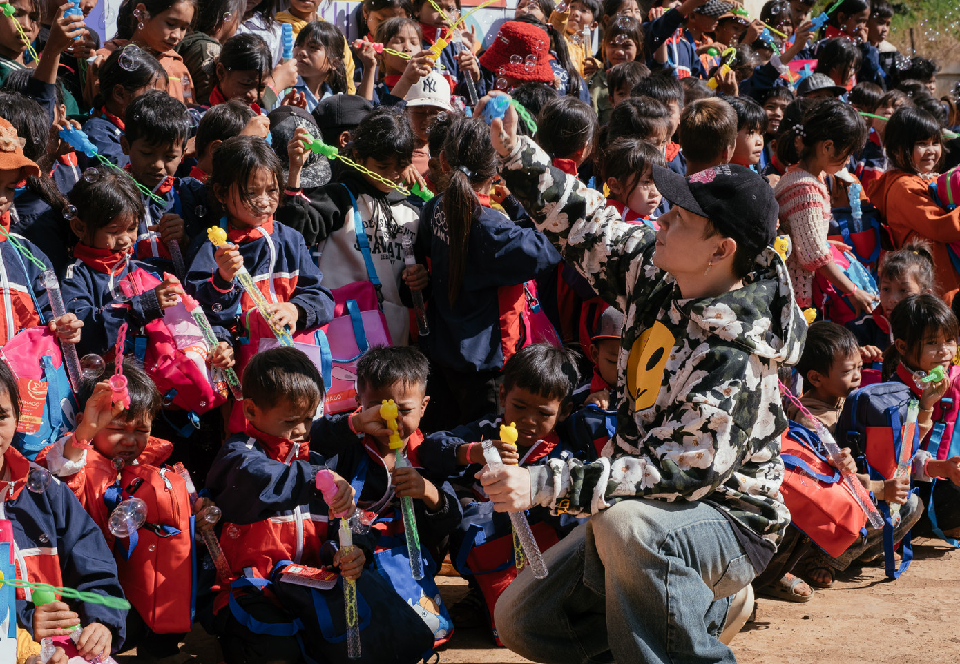Tại đây, anh cùng các "học trò" Gonzo, 16 Typh đã dành một ngày giao lưu, vui chơi cùng 150 em nhỏ đồng bào Jrai với các hoạt động vẽ tranh, tô tượng, dạy nhạc và tham gia các trò chơi.