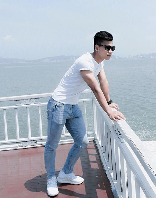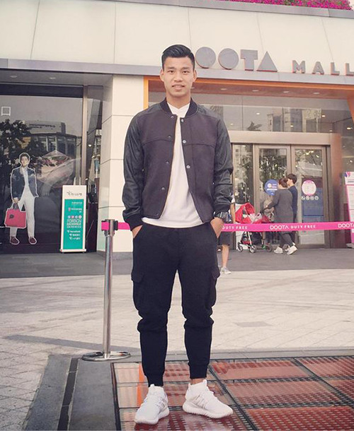 Chàng trai sinh năm 1996 đang thi đấu cho đội tuyển Hoàng Anh Gia Lai ưa chuộng cách mặc đồ tối giản, toát lên vẻ rắn rỏi, khỏe khoắn đúng chuẩn "boy thể thao".