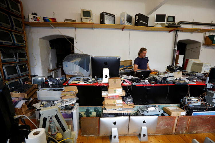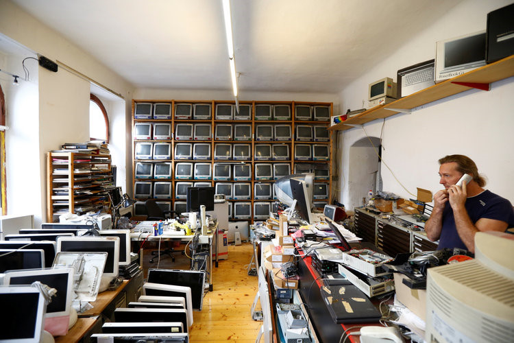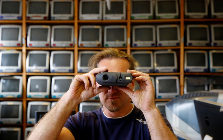 Roland Borsky xin hoặc mua lại những thiết bị mà người dùng không cần đến. "Cũng giống như những người có sở thích sưu tầm xe hơi hay nhiều thứ khác, đây là niềm đam mê của tôi", anh nói. Trong ảnh, Borsky đang cầm chiếc máy ảnh Quicktake ra đời năm 1994.