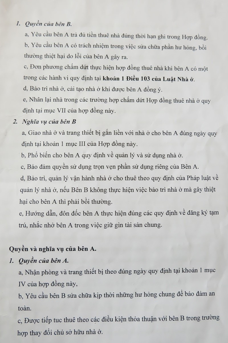 Hợp đồng thuê nhà sẽ có chi tiết mọi điều khoản hai bên phải tuân thủ.