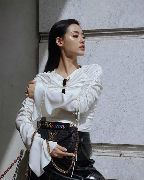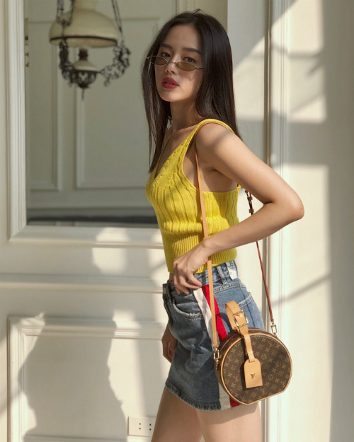 Bộ cánh dạo phố đơn giản được nữ người mẫu sinh năm 1995 phối cùng chiếc túi Petite Boite Chapeau nằm trong BST Resort 2018 của Louis Vuitton. Từ khi trình làng, thiết kế này đã được các tín đồ thời trang rinh về dù có giá thành không hề rẻ (95 triệu đồng).
