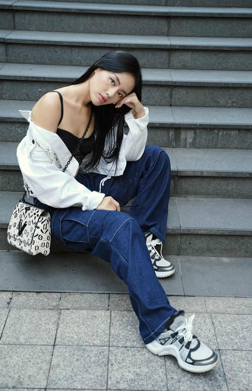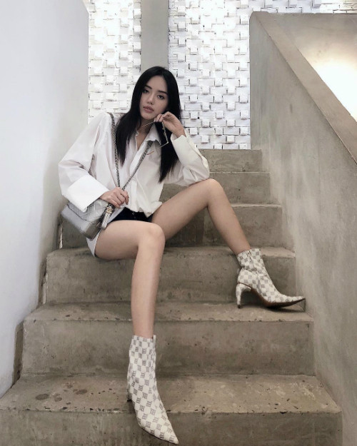 Túi Chanel Gabrielle gam màu xám bạc có giá hơn 82 triệu đồng là item thường xuyên được Khánh Linh mang theo mỗi khi xuống phố. Cô kết hợp cùng quần short jeans, áo sơ mi và đôi boots họa tiết đặc trưng của Louis Vuitton có giá hơn 15 triệu đồng.