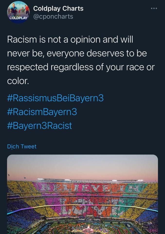 Fan của nhóm Coldplay cũng đưa ra lời ủng hộ bằng cách treo hashtag giống với ARMY.