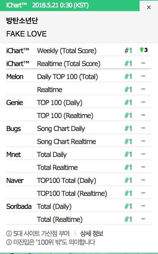 Tuyệt vời hơn nữa là khi iChart cập nhật lần thứ hai vào lúc 1h30 (theo giờ Hàn Quốc), Fake Love đã tiếp tục đạt được PAK lần thứ hai, và 1 tiếng đồng hồ sau là PAK thứ ba. Với tình hình này, rất có thể số lượng PAK của BTS sẽ còn tăng nữa.