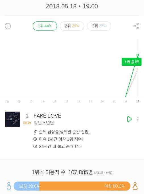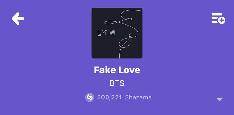Sau gần 7h ra mắt, Fake Love đã trở thành bài hát đạt 200.000 lượt Shazam nhanh nhất của BTS cũng như của K-Pop từ trước đến nay.
