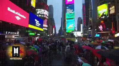 Người hâm mộ tập trung về Quảng Trường Thời Đại chờ đợi màn trình diễn của BTS trong chương trình Good Morning America.