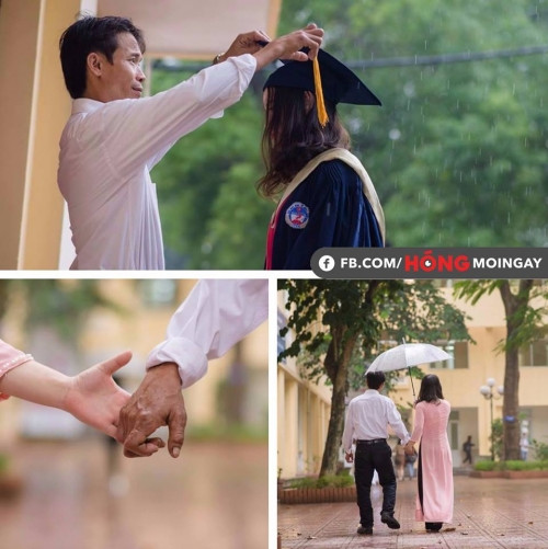 Tuy đây không phải là buổi lễ tốt nghiệp chính thức, chỉ là ngày chụp ảnh kỷ yếu của cô gái trong hình nhưng bố vẫn bắt xe từ quê lên thành phố từ sớm để có thể chụp ảnh cùng con. Hình ảnh người cha với bàn tay tật nguyền nhưng vẫn nắm chặt lấy tay con đã đề lại ấn tượng sâu sắc trong trái tim nhiều người, bức ảnh dung dị nhưng tràn đầy tình cảm, tình cha con thiêng liêng.