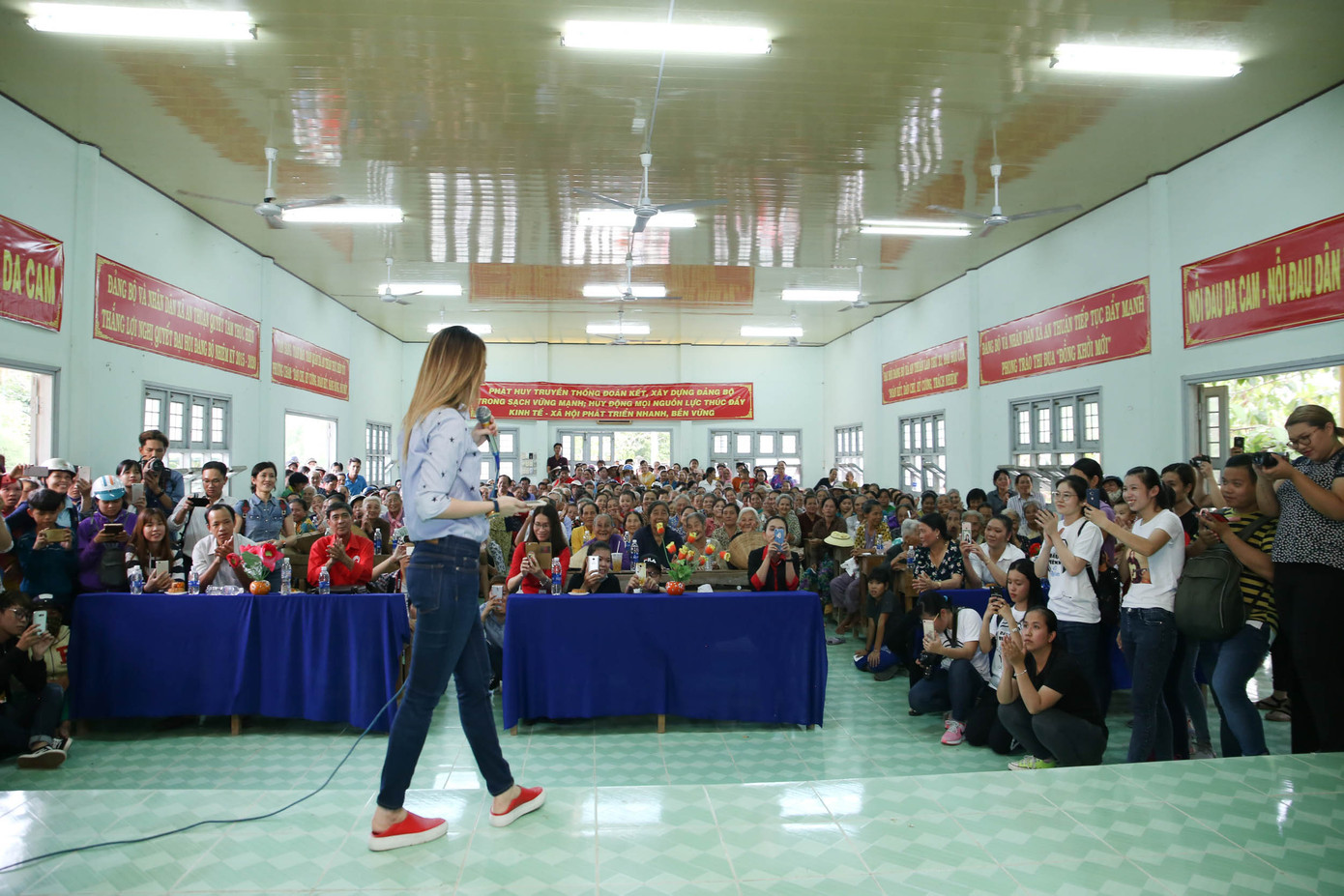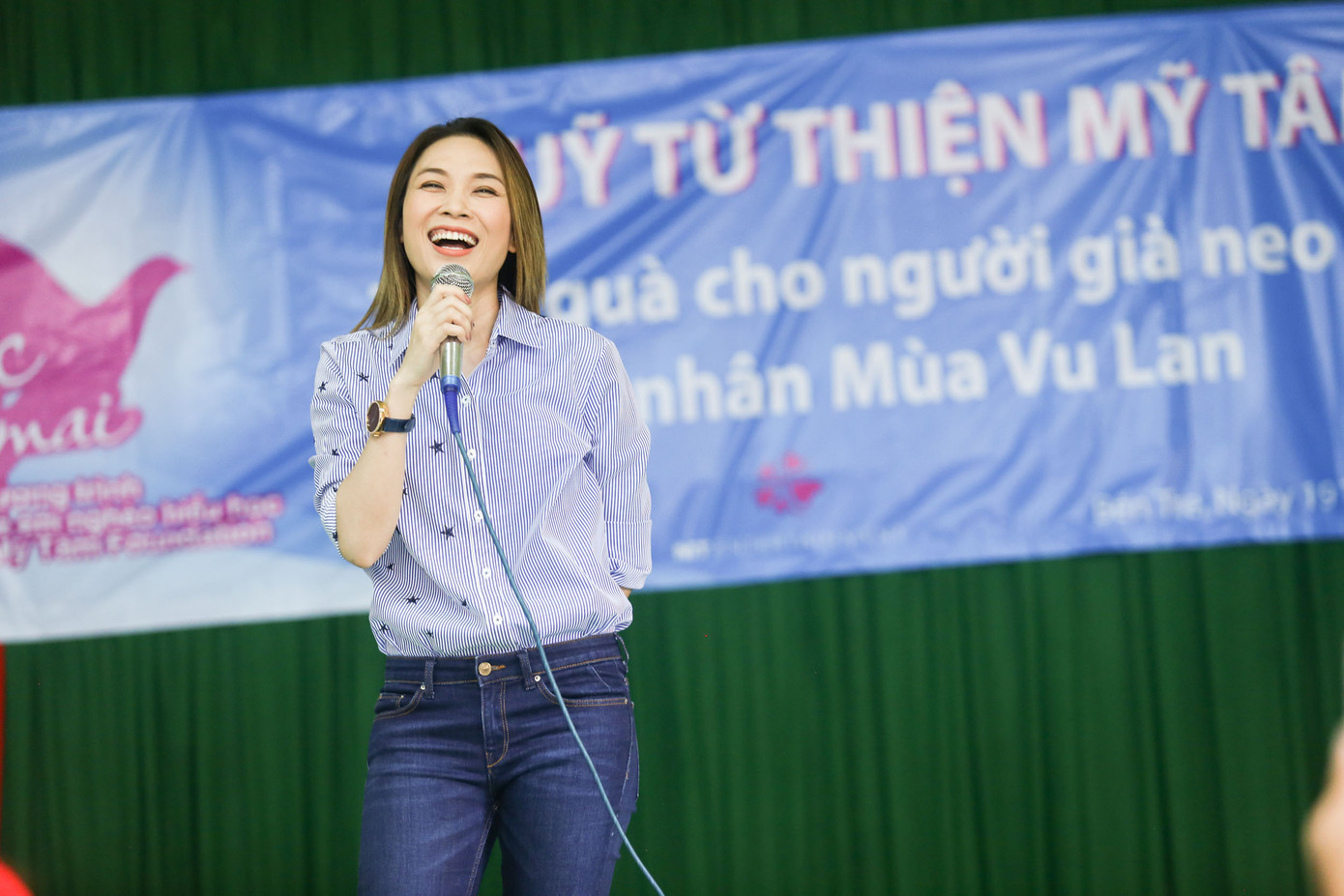 Bên cạnh tặng quà, ca sĩ Mỹ Tâm còn mang đến cho bà con những ca khúc theo yêu cầu như Họa Mi Tóc Nâu, Dạ Cổ Hoài Lang, Người Tình Mùa Đông. Bên cạnh đó, phần giao lưu hài hước đặc trưng của nữ ca sĩ đã làm nhiều người có mặt tại buổi trao quà bày tỏ sự thích thú. Nổi bật trong số đó là tiết mục ca hát bất ngờ của một bà cụ. Để phần trình diễn thêm hấp dẫn, cô đã tình nguyện múa phụ họa khi bà cụ đang thể hiện một ca khúc nhạc trẻ sôi động ngay trên sân khấu.