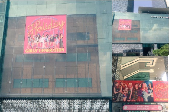 Công ty SM Ent dĩ nhiên không thể quên sinh nhật của nhóm nhạc con cưng. Tấm poster siêu to của album Holiday Night hiện đang bao phủ toàn bộ mặt tiền tòa nhà Coex Artium. Ảnh: Stella ♡ @SonexStella.