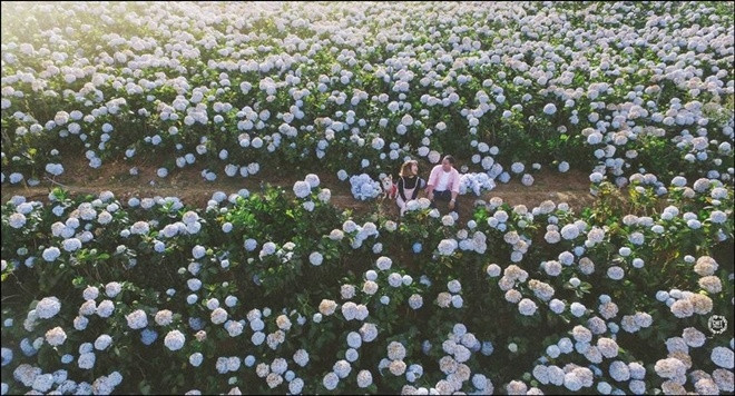 Sau khi đã “ôm trọn” những quả bí ngô to tướng bạn có thể chọn cánh đồng hoa cẩm tú cầu làm điểm đến tiếp theo cho chuyến đi “cổ tích” của mình. Cánh đồng này rộng hơn 2 hecta với những khóm hoa cẩm tú cầu ẩn mình dưới những tán rừng thông xanh mát. Tất cả hoà quyện lại và tạo nên một khung cảnh vô cùng nên thơ như trong truyện cổ tích mà chúng ta lại chính là những nàng công chúa, hoàng tử giữa rừng hoa đó chứ!