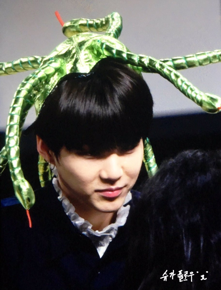 Đừng nhìn vào mắt Suga nhé! Anh chàng đã biến hình thành Nữ hoàng Medusa đầu rắn vô cùng đáng sợ rồi đây này.