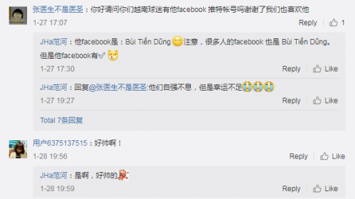 Bên cạnh tình cảm dành cho Tiến Dũng, một số cầu thủ khác như Phan Văn Đức hay Lương Xuân Trường cũng được fan Trung Quốc nhắc đến. Thậm chí có những người còn biết được cả biệt danh của Lương Xuân Trường.