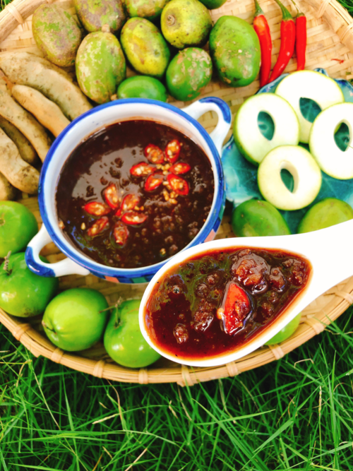 Mắm ruốc Thái có tên là Nam Pla Wan. Ngoài việc chấm xoài chua kiểu Thái thì còn có thể chấm táo, ổi, cóc và khế, tóm lại là cứ quả gì chua, giòn chấm là ngon hết. Mắm ruốc Thái có vị ban đầu hơi giống kho quẹt của Việt Nam, nghĩa là hơi mặn mặn ngọt ngọt, nhưng sau đó thì vị mắm ruốc đặc trưng hiện lên rất rõ nên ăn rất vào. Mắm ruốc Thái chấm cũng đỡ bị khô hơn so với muối. Bên cạnh đó mắm ruốc Thái không bị quá bốc mùi nên ăn trong phòng vẫn vô tư nhé.