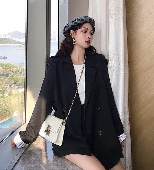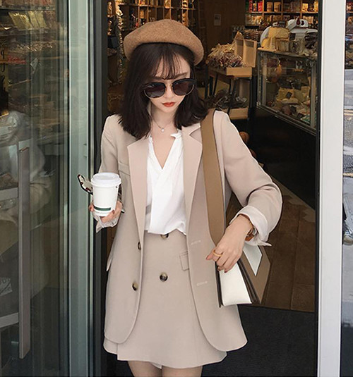 Muốn có diện mạo đáng yêu như các cô gái Hàn Quốc, bạn hãy kết hợp blazer với chân váy hoặc quần shorts cùng tông. "Đóng bộ" cả cây thế này cũng là xu hướng được các cô gái Việt yêu thích trong những ngày sang Thu.