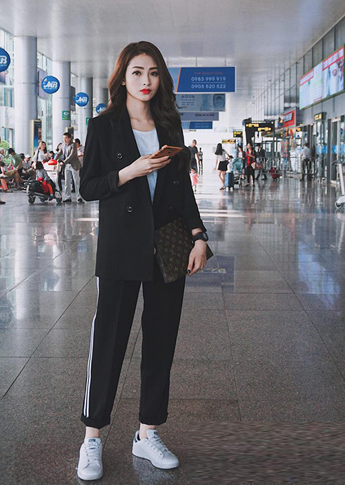 Diện cả bộ áo váy cùng màu trông vừa lịch sự, lại vừa khoe được đôi chân thon mà không đánh mất đi vẻ năng động.