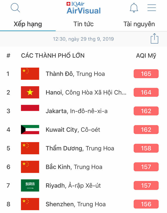 Hướng dẫn kiểm tra chất lượng không khí trên điện thoại bằng ứng dụng Air Visual