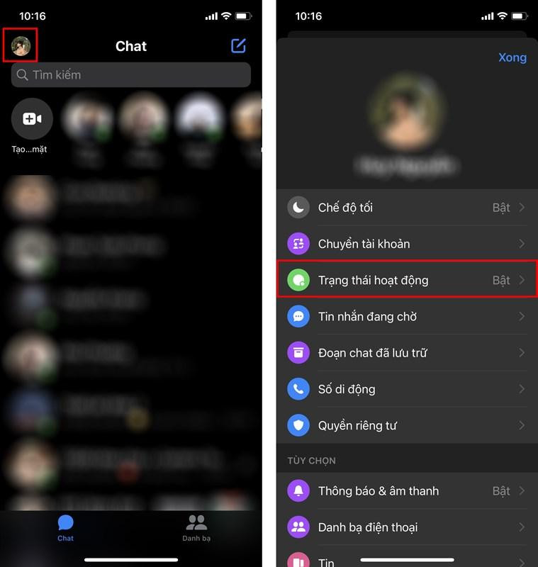 Để tắt trạng thái online và bong bóng chat hiển thị khi cả 2 đang xem tin nhắn, bạn có thể làm theo các bước dưới đây: