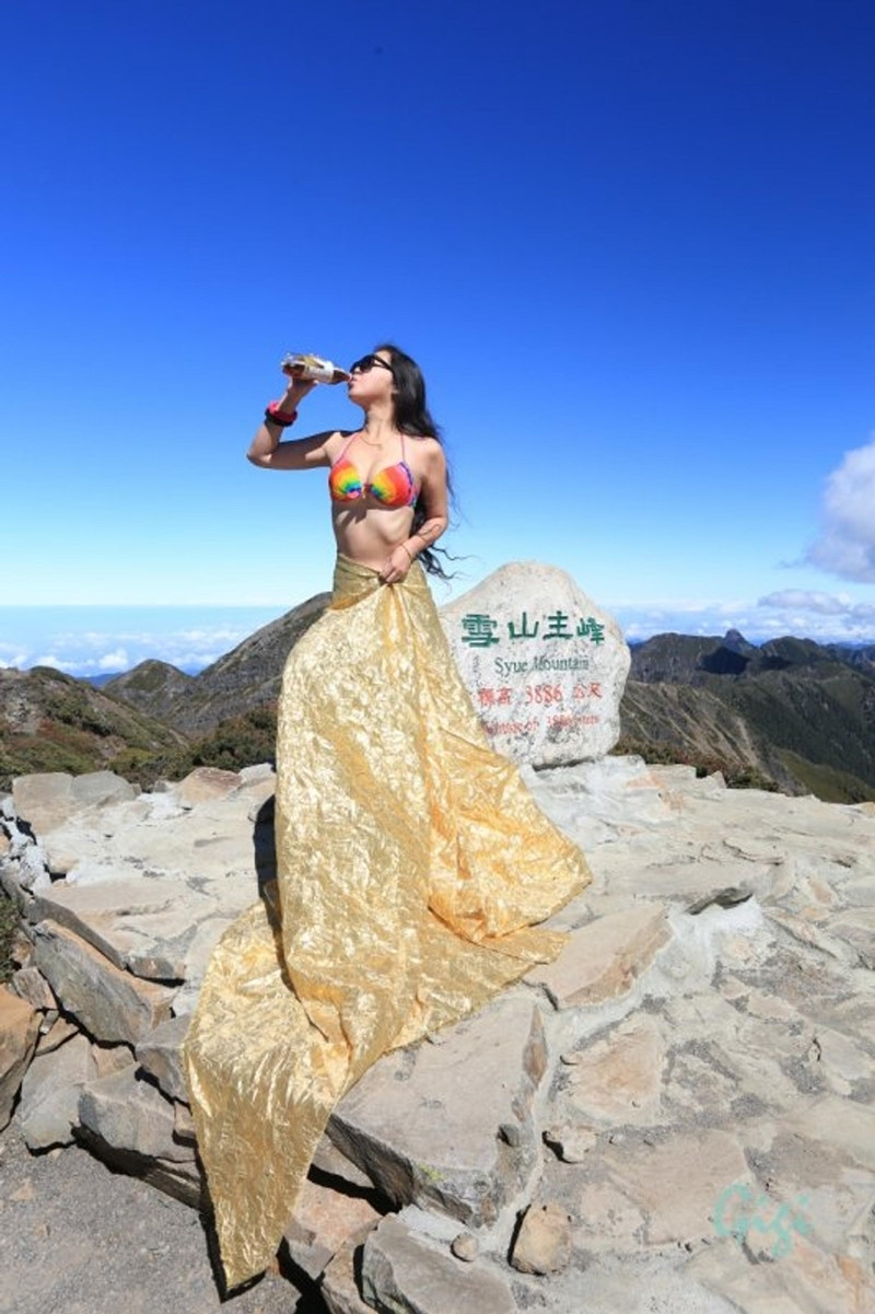 Gigi Wu tự gọi mình là The Bikini Hiker sau khi cô nhận được sự quan tâm lớn của cư dân mạng nhờ đăng tải những tấm ảnh đi leo núi trong trang phục bikini mát mẻ. Năm nay 36 tuổi, người phụ nữ Đài Loan này đã chinh phục hầu hết những đỉnh núi cao nhất ở đất nước này mà chỉ cần hai mảnh vải trên người, không cần dụng cụ bảo hộ hay đồ ấm kể cả trong mùa đông lạnh lẽo.