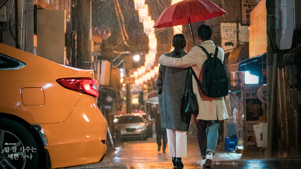 Trời mưa, Joon Hee rõ ràng có thể mua hai cái dù để tỏ độ hào phóng? Nhưng không, “phi công lành nghề” chỉ bạn: Giả vờ vô tư mua một cái thôi, chị em mà, đi chung dưới một cái ô có gì đâu mà ngại.
