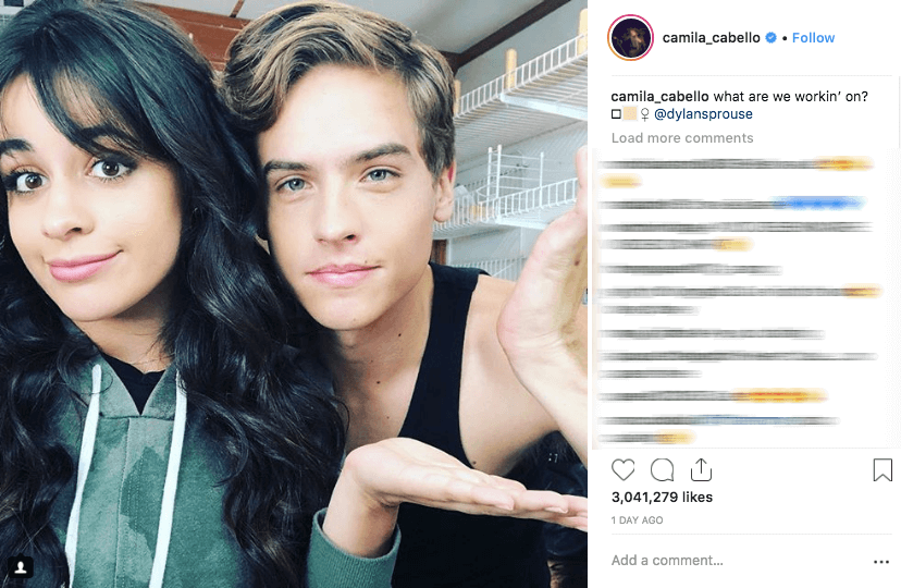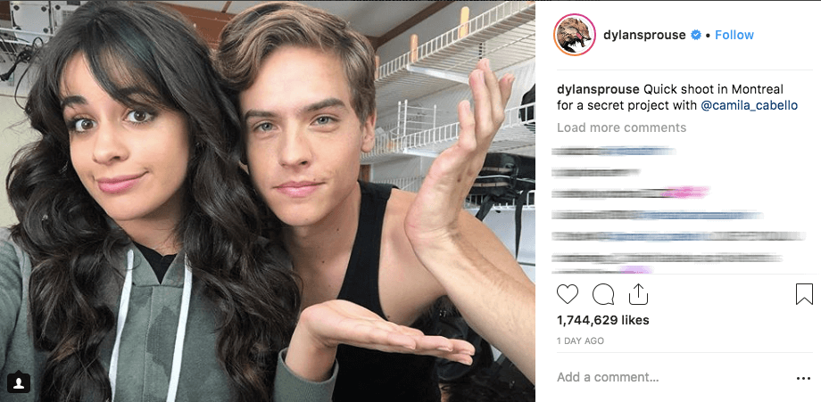 Và mới đây, anh chàng đã xuất hiện trên Instagram của chủ nhân hit Havana cùng “hé lộ” về một dự án bí mật đang cần thời gian để bật mí. Theo đó, cô nàng “vựa muối” Camila Cabello xuất hiện rạng rỡ và chia sẻ nội dung “đầy thính”: “Chúng tôi đang tiến hành gì đây? @dylansprouse”.