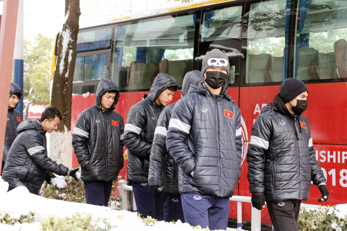 Các cầu thủ U23 Việt Nam đến sân tập để luyện quân ở buổi chiều ngày 26/1.