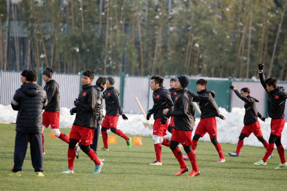 Theo đó, HLV Park Hang Seo chỉ cho báo chí tác nghiệp 15 phút và bắt đầu tập kín. Theo thông tin VFF, các cầu thủ U23 Việt Nam luyện tập thoải mái, không có dấu hiệu bị sức ép trước trận cầu lịch sử.