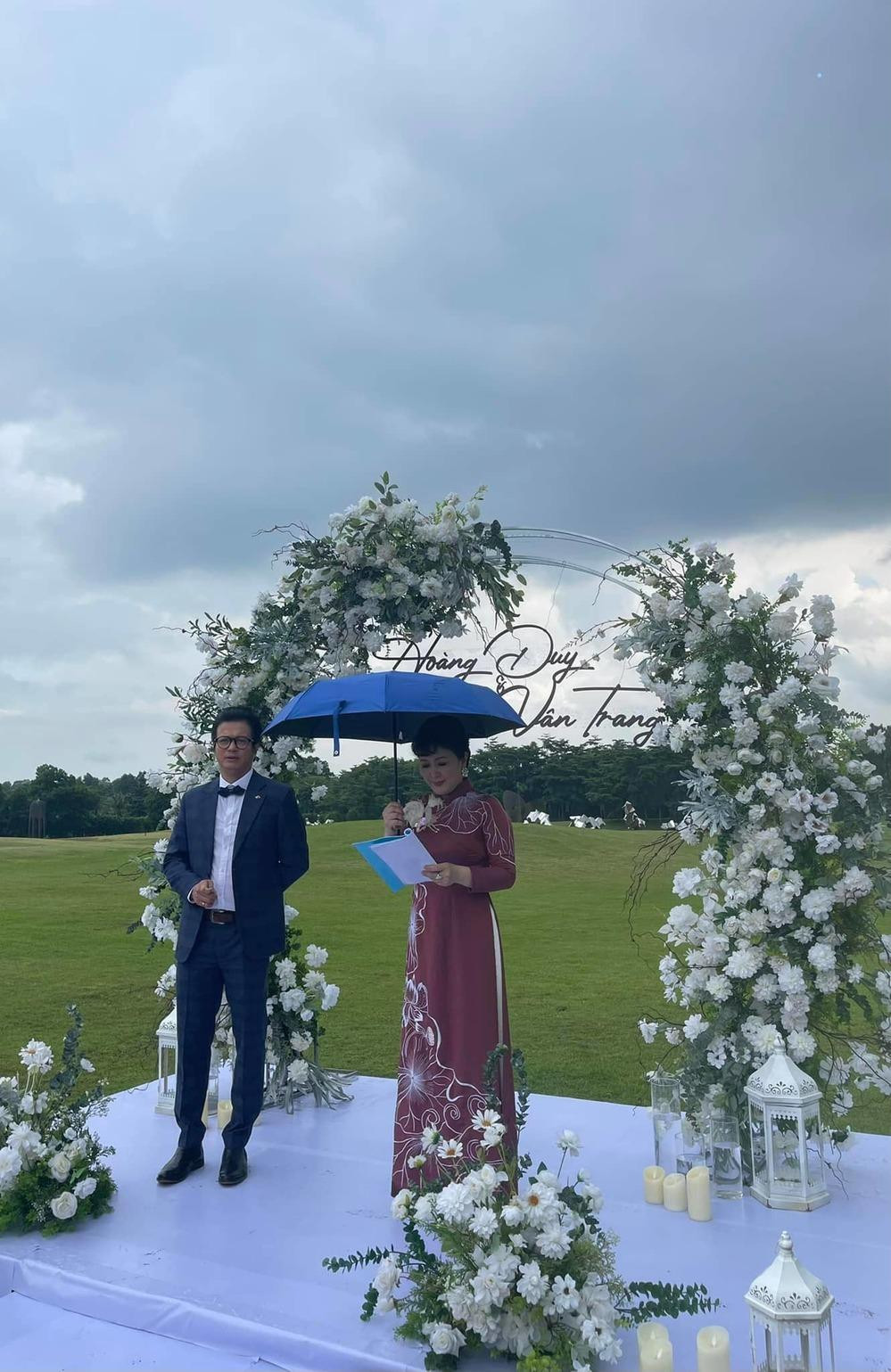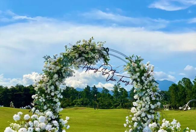 Bối cảnh là sân vườn của một resort sang trọng với cây cối xanh mướt, phần trang trí nhẹ nhàng đơn giản giống như chính tính cách Vân Trang. Và quan trọng nhất là khách mời tham dự đều là những người thân thiết nhất của cô dâu chú rể và ai cũng tươi vui rạng rỡ.