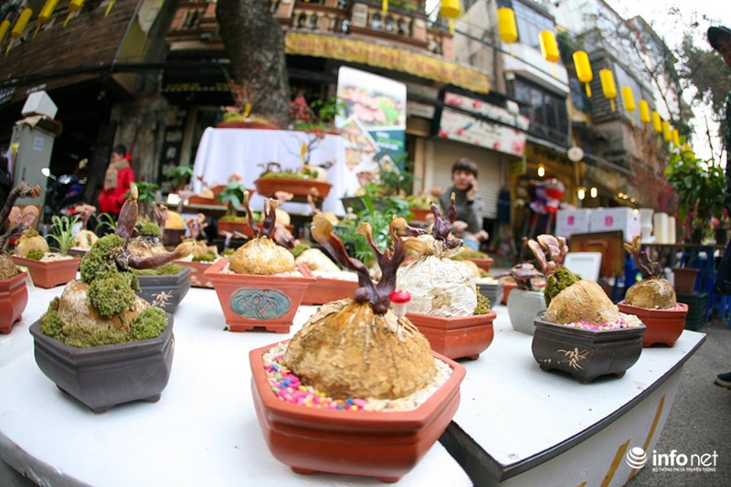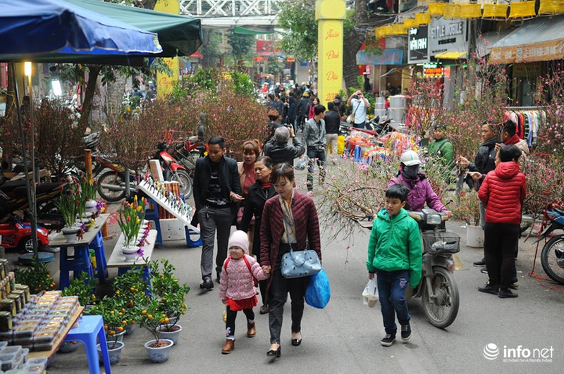 Đào, quất là loại cây cảnh truyền thống của người dân miền Bắc, vì vậy đây cũng là mặt hàng được bày bán nhiều nhất tại chợ hoa Hàng Lược.