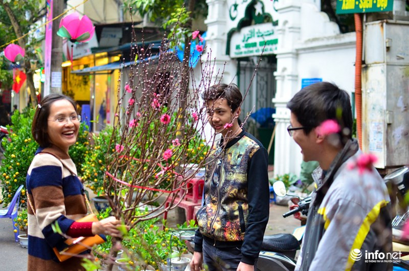 Nhiều bạn trẻ tìm đến chợ hoa để tìm lại hương vị Tết xưa và lựa chọn những cành hoa Tết.