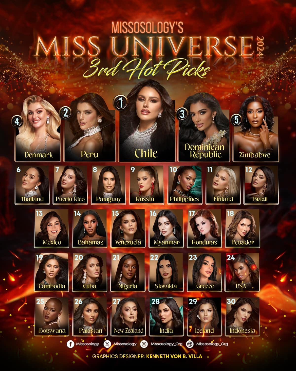 Năm nay, Miss Universe 2024 sẽ lấy Top 30 (thay vì 20) do có lượng thí sinh tham gia đông nhất lịch sử: 127 người đẹp. Chuyên trang nhan sắc Missosologyđã chọn ra 30 người đẹp xuất sắc nhất trước thềm Bán kết.