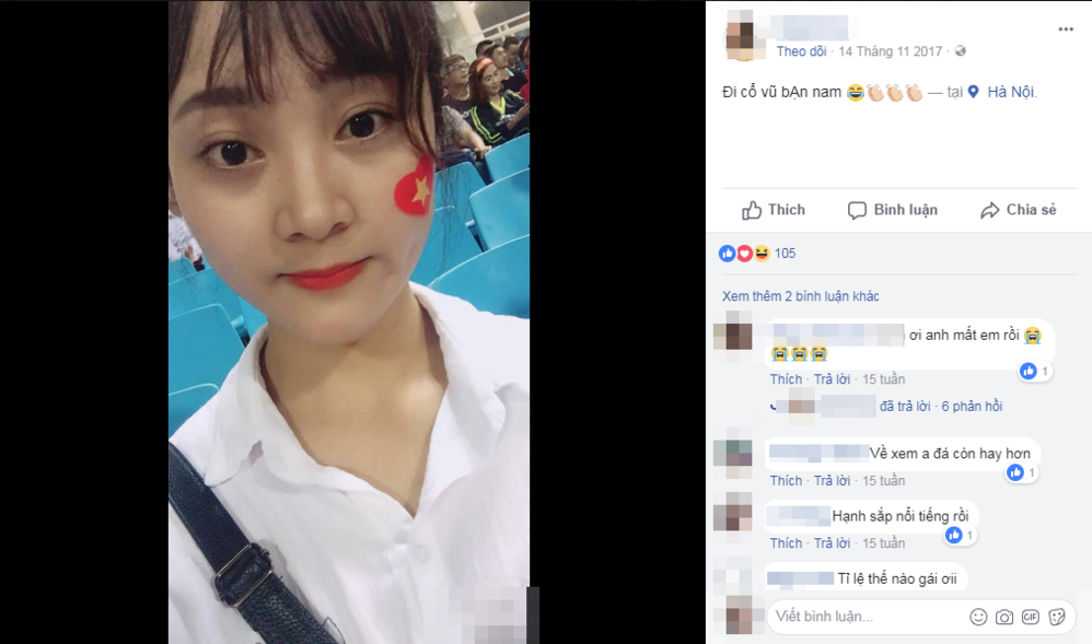 Cô gái này, từng nhiều lần đăng tải hình ảnh đi cổ vũ cho Công Phượng với lời lẽ rất tình cảm. Thậm chí là cả những bức ảnh chụp ngôi sao của HAGL từ xa.