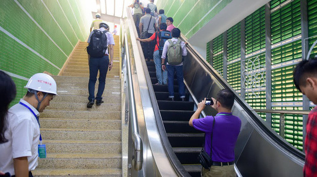 Lối thang bộ và thang cuốn dành cho hành khách thông thường. Đối với người khuyết tật sẽ có thang máy riêng để di chuyển lên/xuống nhà ga đi tàu.