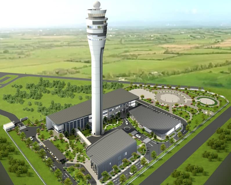 | Tháp kiểm soát không lưu có chiều cao 123 m, diện tích xây dựng khoảng 80 m2. Đường kính thân tháp khoảng 10 m, cabin kiểm soát tại sân có diện tích khoảng 150 m2 và 2 cabin kiểm soát sân đỗ với diện tích mỗi cabin khoảng 70 m2. |