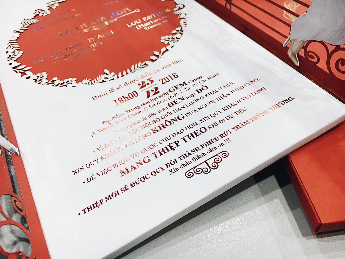 Mới đây, thiệp mời tham dự đám cưới của Hari Won và Trấn Thành đã bất ngờ lộ diện trên mạng xã hội. Nhiều khán giả đã bày tỏ sự thích thú với thiết kế nổi ba chiều độc đáo, in hình cô dâu Hari và chú rể Xìn (tên thân mật của Trấn Thành) trên thiệp mời.