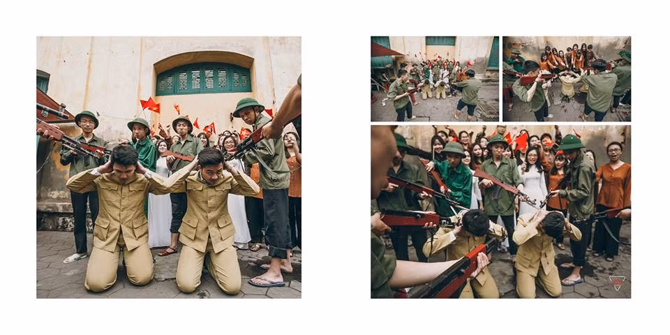 Các bạn học sinh THPT Ngô Quyền thể hiện sự sáng tạo qua bộ ảnh kỷ yếu độc đáo.