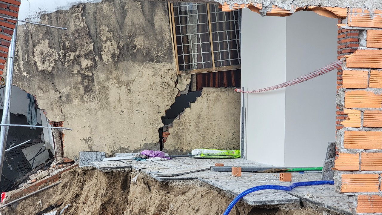Nhìn căn nhà kiên cố bị dòng sông "nuốt" mất phân nửa, bà Lê Thị Năm (70 tuổi) nhớ lại, khoảng hơn 6 giờ sáng, bà nghe tiếng "rắc rắc" ở tường, nền nhà xuất hiện nhiều vết nứt kéo dài. Chỉ một lát sau từng phần của căn nhà đổ xuống sông. Trong khoảng 30 phút, phòng bếp cùng công trình phụ của gia đình nằm sát bờ sông bị nhấn chìm, kéo theo nhiều tài sản.